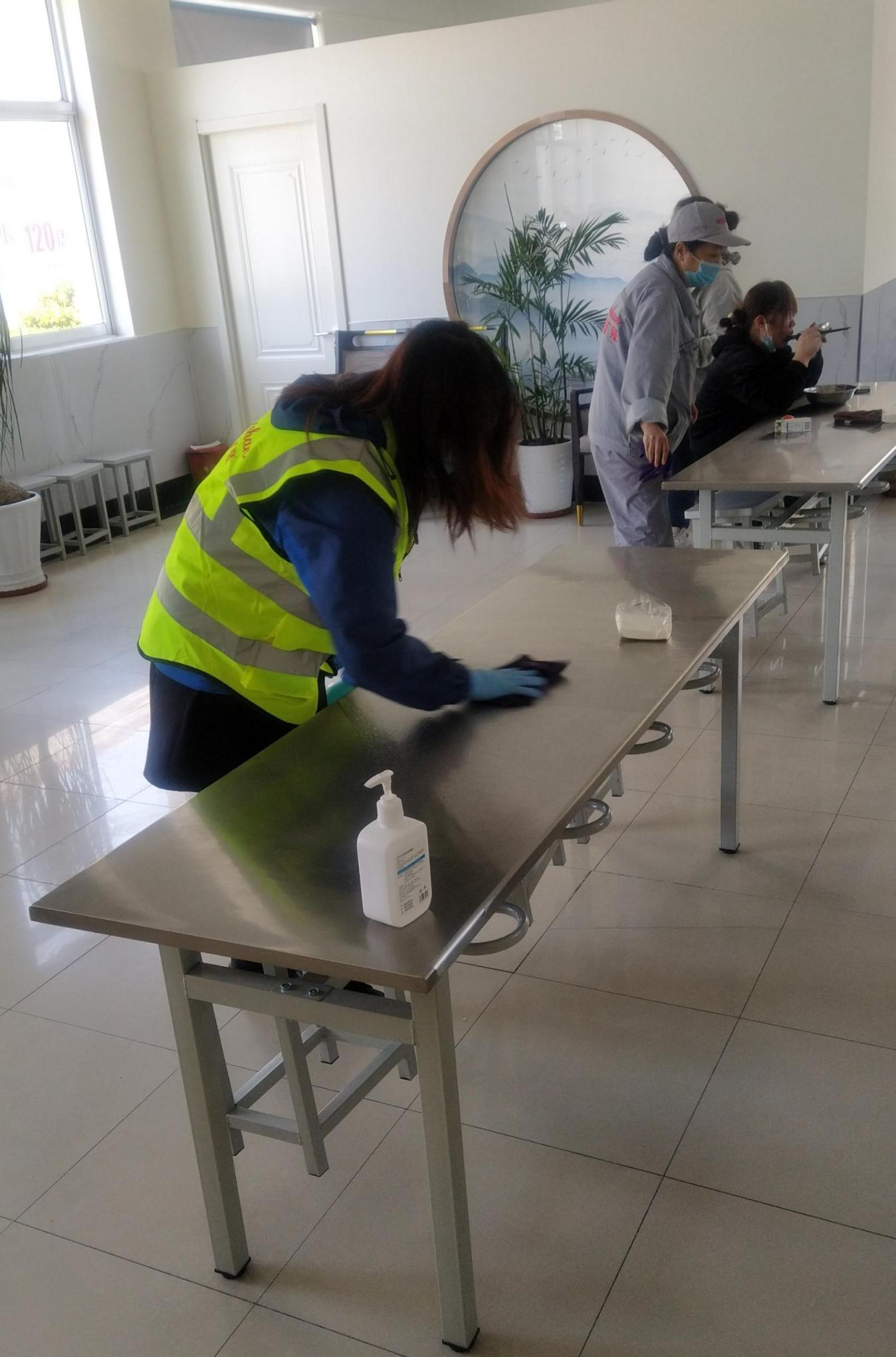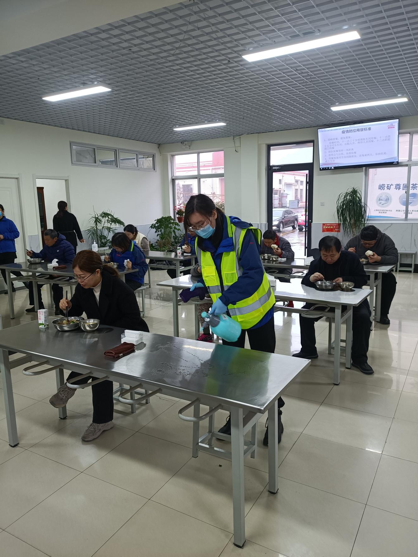 有的隊(duì)員早晨協(xié)助入廠檢查,中午協(xié)助食堂秩序維持和餐后消毒,還要負(fù)責(zé)辦公區(qū)域的環(huán)境消殺、通風(fēng),一天就像一個(gè)陀螺轉(zhuǎn)個(gè)不停。我曾經(jīng)問(wèn)過(guò)她“累不累”,她笑著告訴我“不累”,然后偷偷告訴我“就是光干活,忘記拍照留念了”,多么可愛(ài)的青春力量!