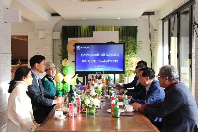 韓國(guó)駐青島總領(lǐng)事柳昌秀一行先后參觀華東·百利酒莊博物館及大酒窖,深入了解企業(yè)發(fā)展歷程,對(duì)集團(tuán)百年品牌給予高度評(píng)價(jià)。同時(shí),就飲料集團(tuán)與韓方開(kāi)展全面、友好的經(jīng)貿(mào)合作進(jìn)行深入溝通交流。